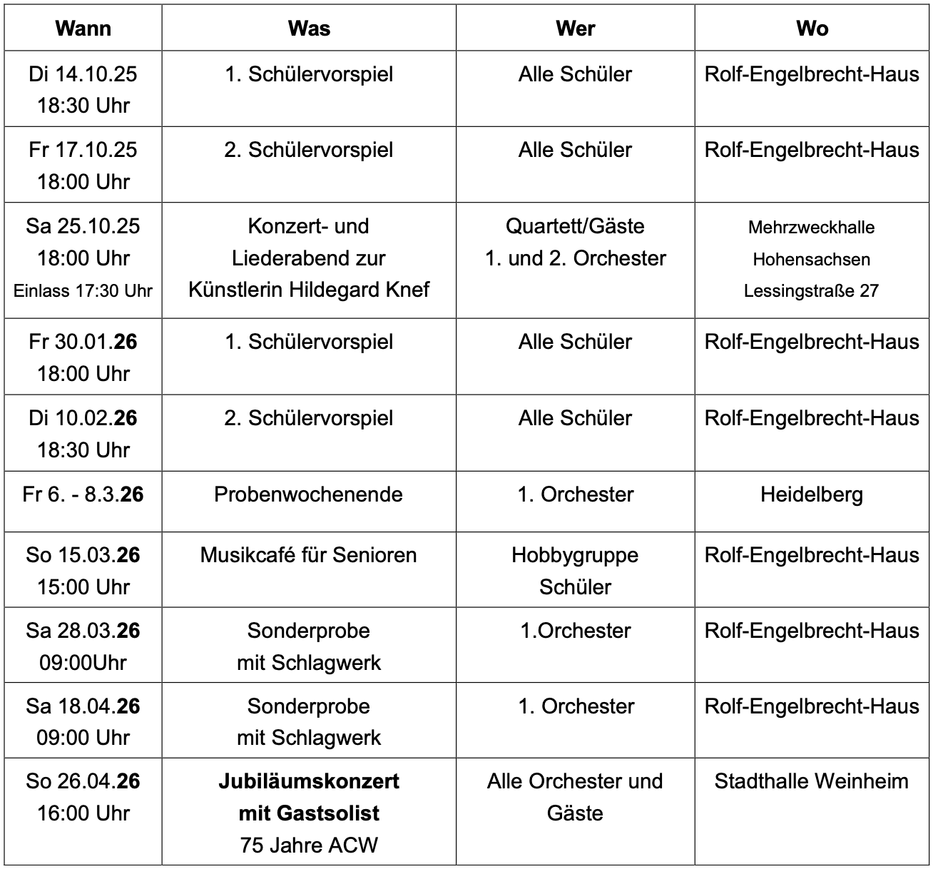 Akkordeonclub Weinheim e. V. Termine 2025 / 2026